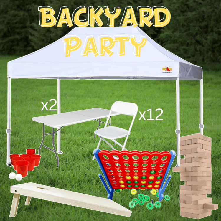 Upgrade your outdoor event with the Backyard Package—the perfect party rental for shade, seating, and entertainment. Book today and make your backyard the place to be!